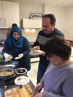 Vor allem beim Herzstück unserer Arbeit, dem "Café International", hören wir zu, wenn Fragen und Probleme der Neuankömmlinge auftreten und versuchen, möglichst sofort jemanden zu finden, der weiterhelfen kann. So wird das Café zum Marktplatz der Vermittlungen und Forum für den Austausch von Erfahrungen. Manche möchten auch über ihre Ängste um die Zurückgelassenen in ihrer Heimat oder ihr Heimweh sprechen. Alles hat hier seinen Platz - aber auch das Lachen kommt nicht zu kurz!